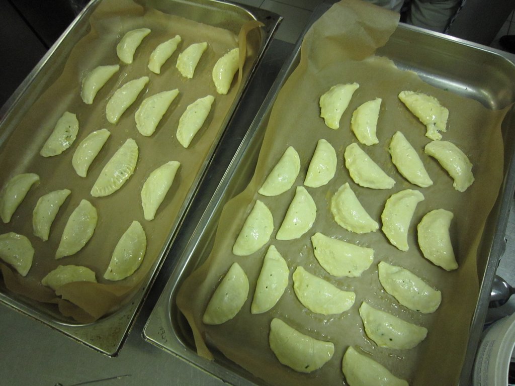 Vypracovat rukama hladké těsto a nechat v ledničce zatuhnout. Vyválet a naplnit zeleninou opečenou na másle se smetanou a česnekem. Péct na 170 °C 5 – 20 minut.